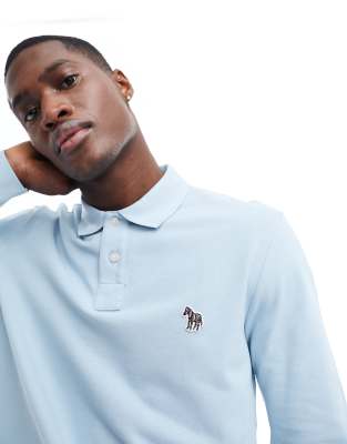 PS Paul Smith - Polo in piqué blu chiaro a maniche lunghe con logo a zebra
