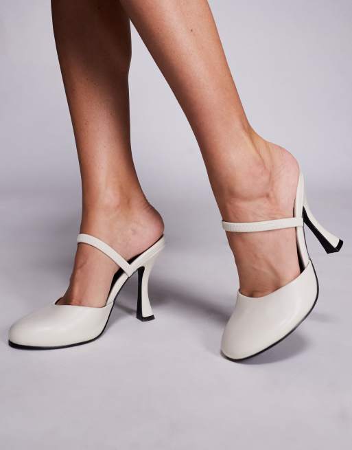 Public Desire - Almond - Scarpe bianche con tacco, punta rotonda e cinturino sul retro