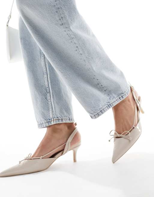 Public Desire - Rai - Scarpe con tacco a punta in vernice color crema con fiocco