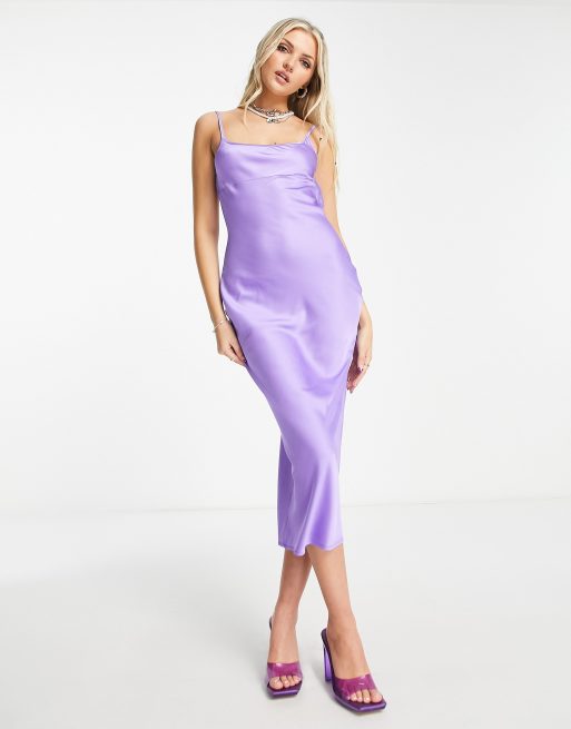 Public Desire - Vestito sottoveste in raso lilla con scollo squadrato