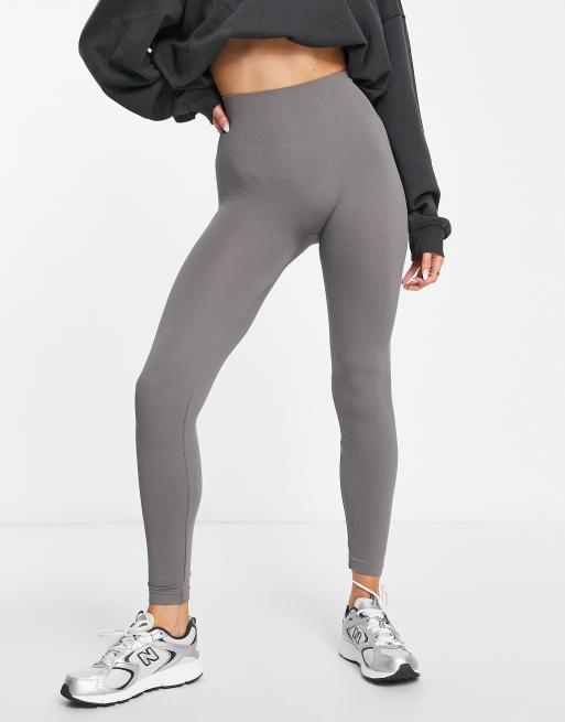 Pull & Bear - Leggings senza cuciture a coste antracite in coordinato