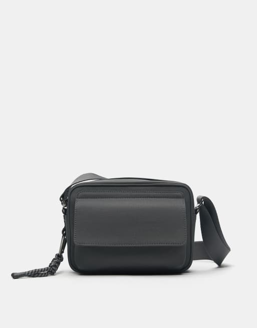 Pull&Bear - Borsa a tracolla grigio antracite decorata