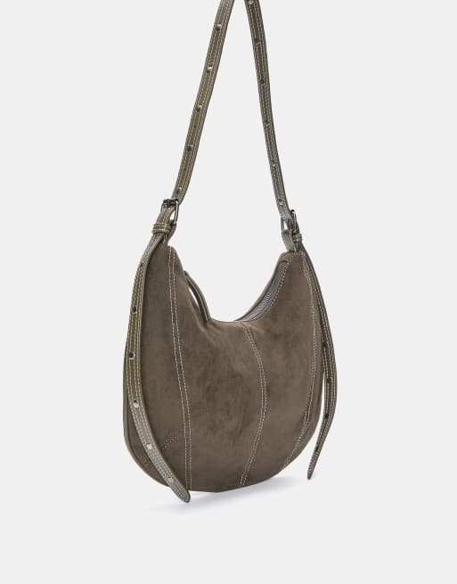 Pull&Bear - Borsa da spalla kaki con cuciture a vista