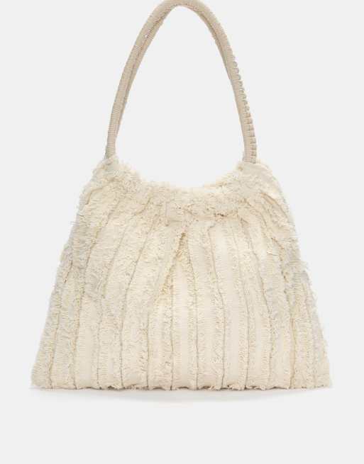 Pull&Bear - Borsa shopping écru con frange