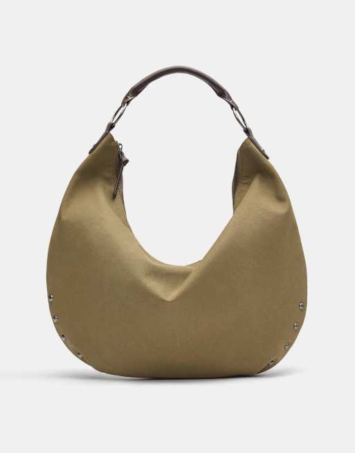 Pull&Bear - Borsa shopping grigio/cammello con borchie ad anello