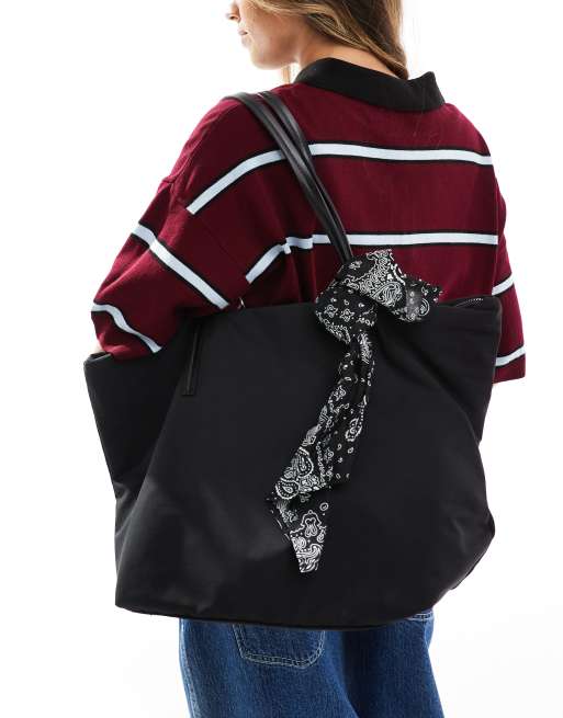 Pull&Bear - Borsa shopping in nylon nera con bandana rimovibile