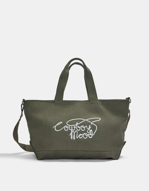 Pull&Bear - Borsa shopping in tela kaki