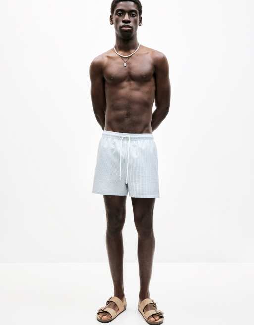 Pull&Bear - Boxer aderenti da bagno blu in seersucker a righe