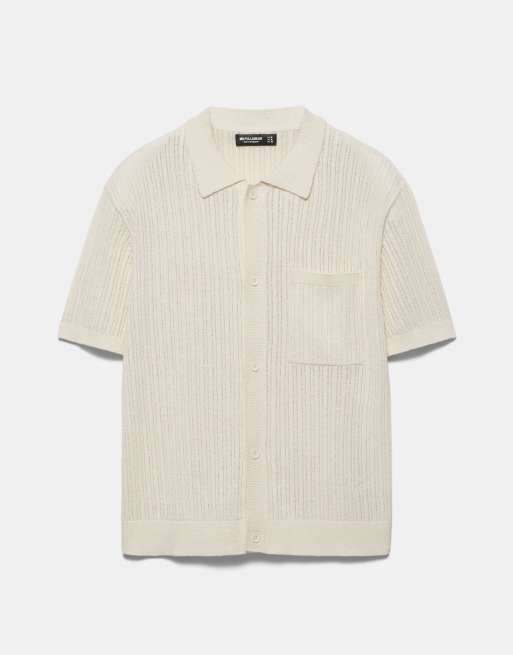 Pull&Bear - Camicia a maniche corte in maglia bianco sporco