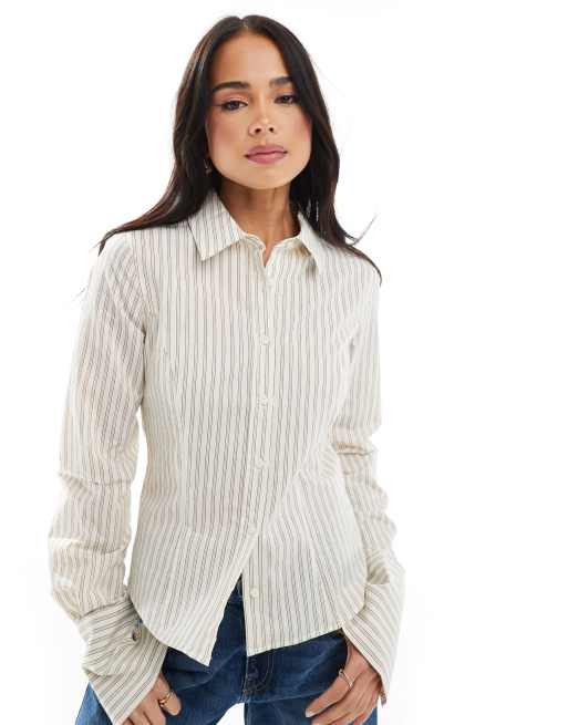 Pull&Bear - Camicia aderente écru a righe