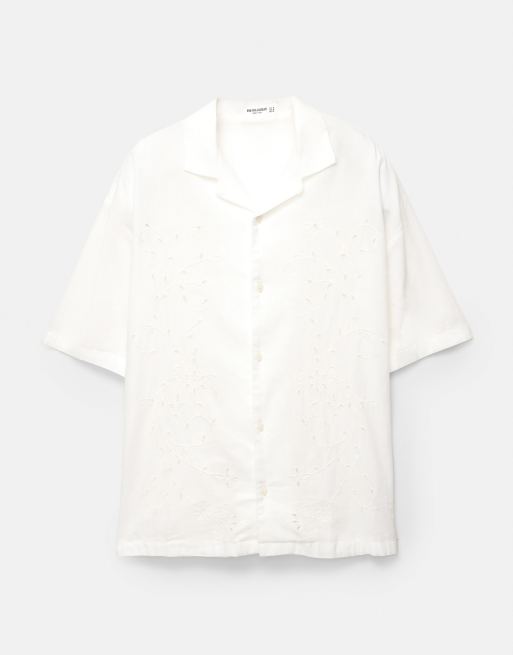 Pull&Bear - Camicia bianco sporco con ricami a fiori