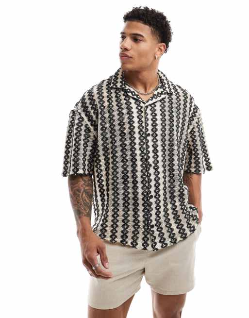 Pull&Bear - Camicia testurizzata con motivo geometrico color bianco e nero