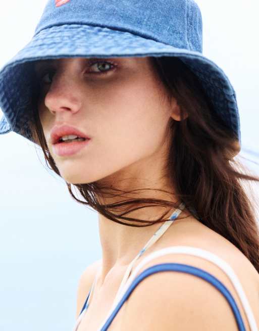 Pull&Bear - Cappello da pescatore in denim blu ricamato
