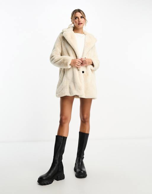 Pull&Bear - Cappotto écru in pelliccia sintetica