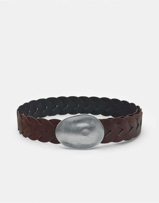 Pull&Bear - Cintura marrone con fibbia ovale irregolare