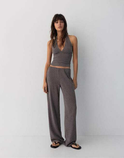 Pull&Bear - Completo in crêpe allacciato al collo marrone
