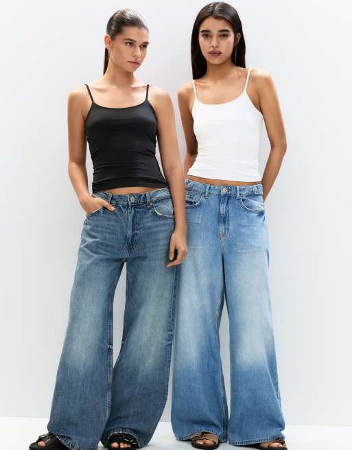 Pull&Bear - Confezione da 2 top bianco e nero con spalline sottili