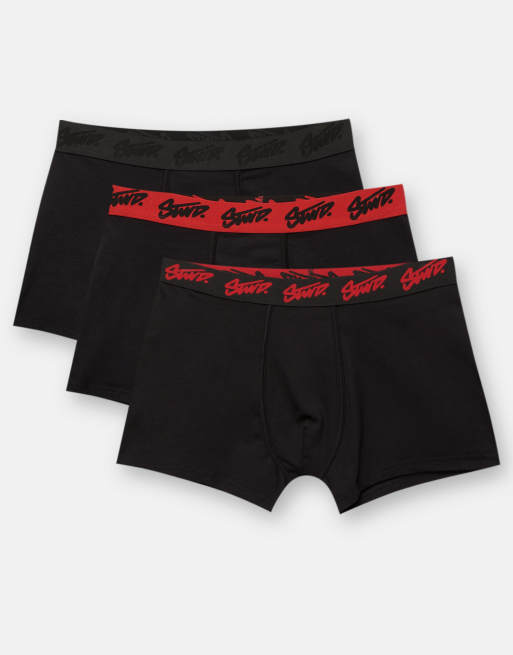 Pull&Bear - Confezione da 3 boxer neri con logo STWD