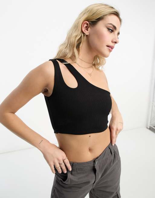 Pull&Bear - Crop top monospalla con spallina doppia nero