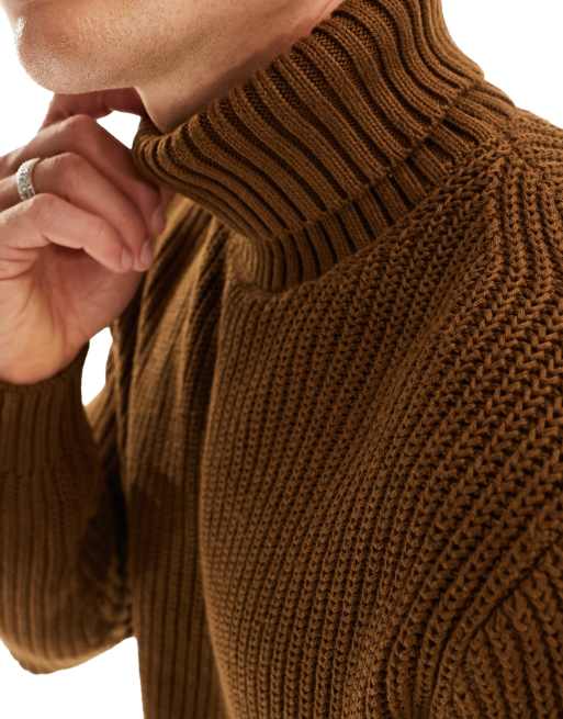 Pull&Bear - Dolcevita marrone in maglia lavorata a trecce