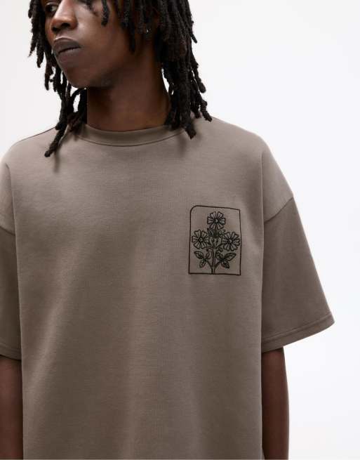 Pull&Bear - Felpa a maniche corte ocra in tessuto interlock