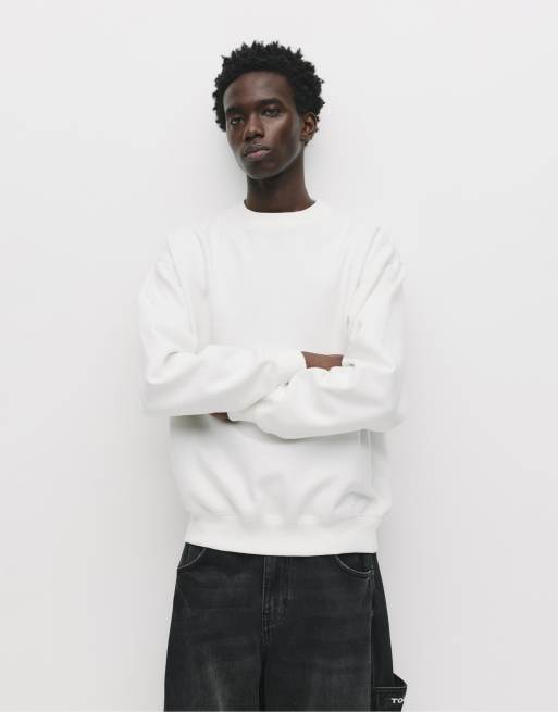 Pull&Bear - Felpa basic bianco sporco con scollo rotondo