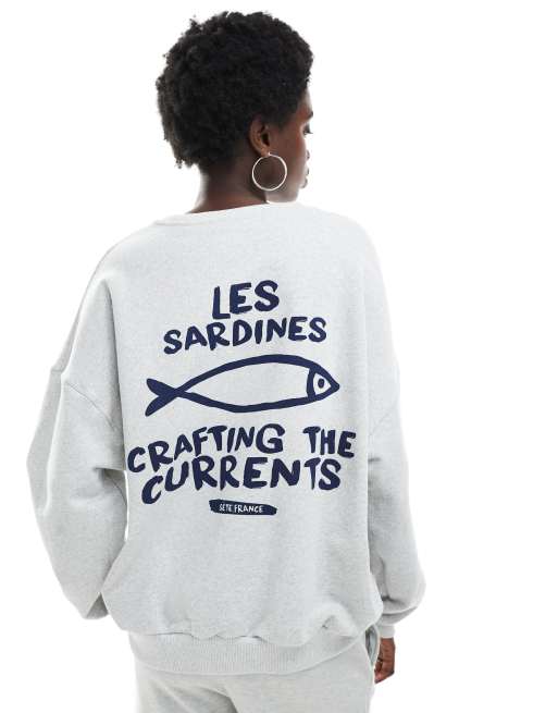Pull&Bear - Felpa color grigio chiaro con stampa grafica di sardine