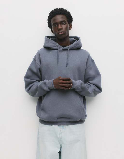 Pull&Bear - Felpa con cappuccio basic grigio blu