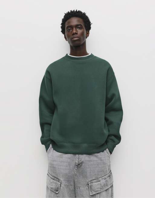 Pull&Bear - Felpa con scollo rotondo basic verde bottiglia
