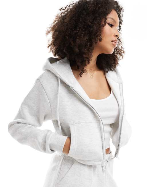 Pull&Bear - Felpa corta grigio mélange con cappuccio e coulisse
