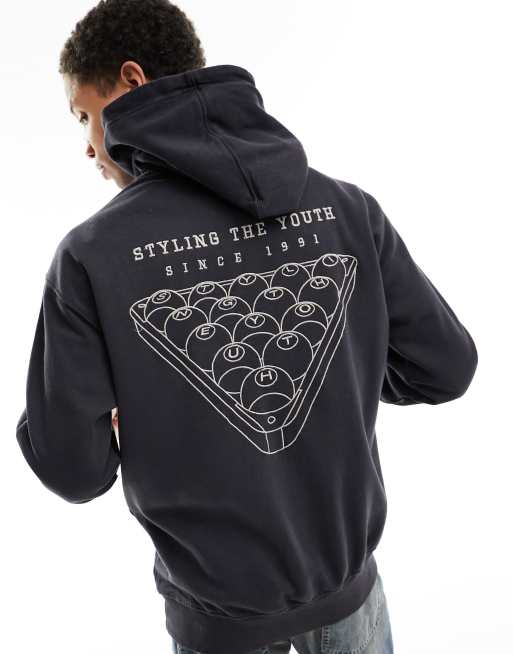 Pull&Bear - Felpa nera con cappuccio e stampa "Rhode Island"
