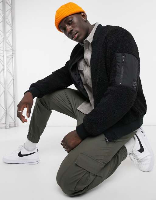 Pull&Bear - Giacca bomber nera in pile borg
