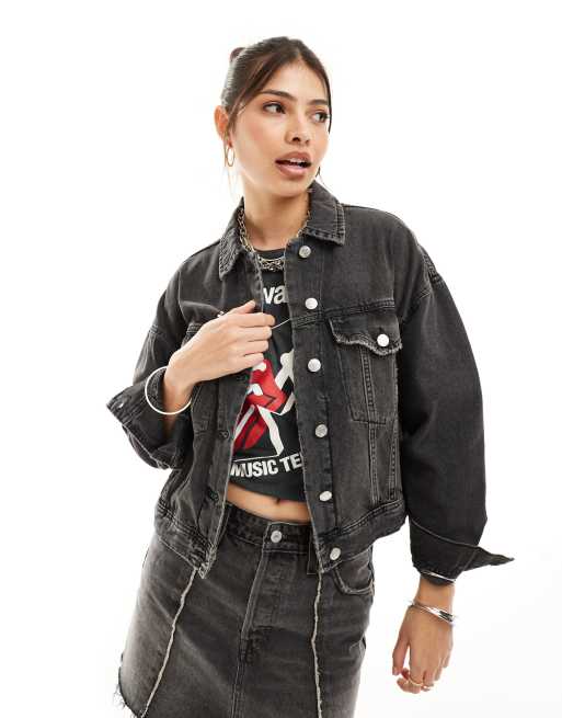 Pull&Bear - Giacca di jeans oversize nero slavato