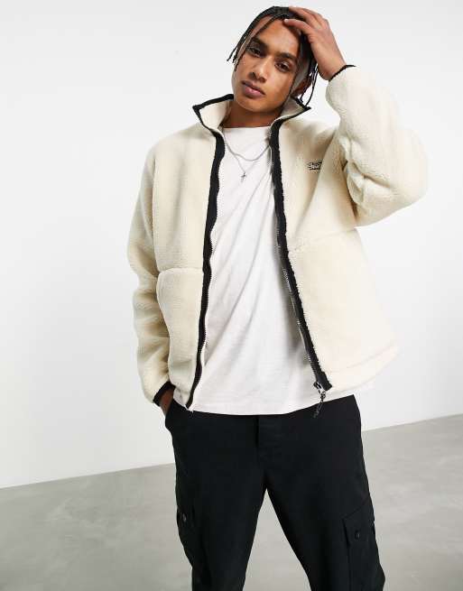 Pull&Bear - Giacca in montone sintetico color écru con zip