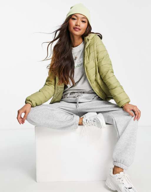 Pull&Bear - Giacca kaki imbottita con zip frontale e cappuccio