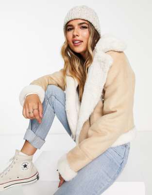 Pull&Bear - Giacca stile aviatore oversize in pelliccia sintetica beige