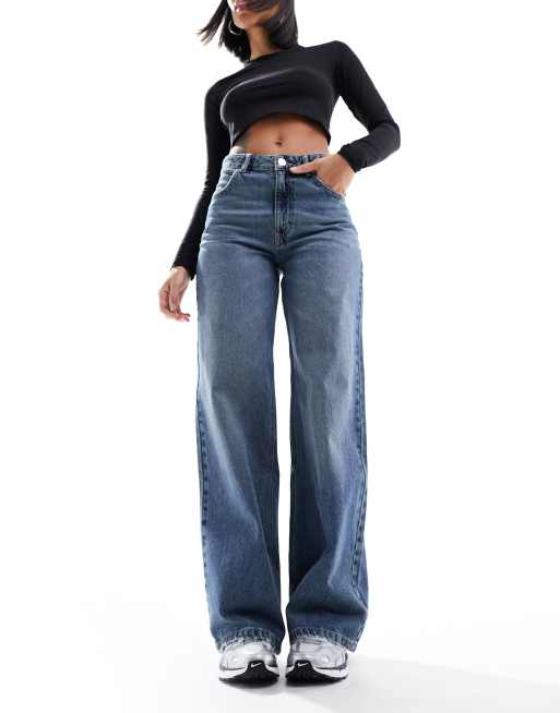 Pull&Bear - Jeans a fondo ampio a vita medio alta blu sporco