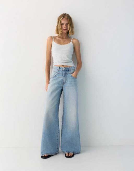 Pull&Bear - Jeans a fondo ampio blu pallido con cuciture