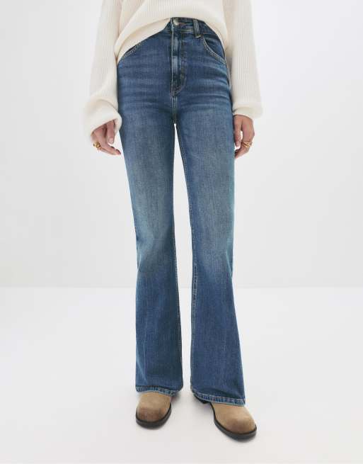 Pull&Bear - Jeans a vita alta blu scuro a zampa