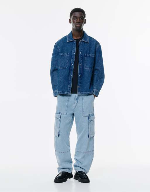 Pull&Bear - Jeans cargo ampi blu medio