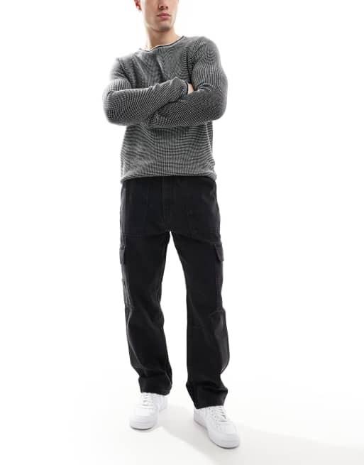 Pull&Bear - Jeans cargo dritti neri con cuciture a contrasto