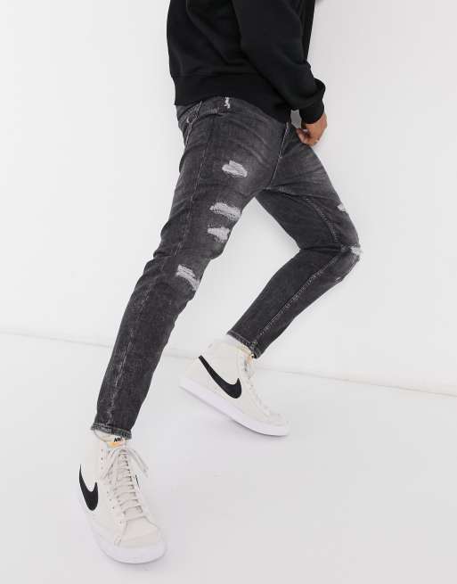 Pull&Bear - Jeans carrot con strappi nero slavato