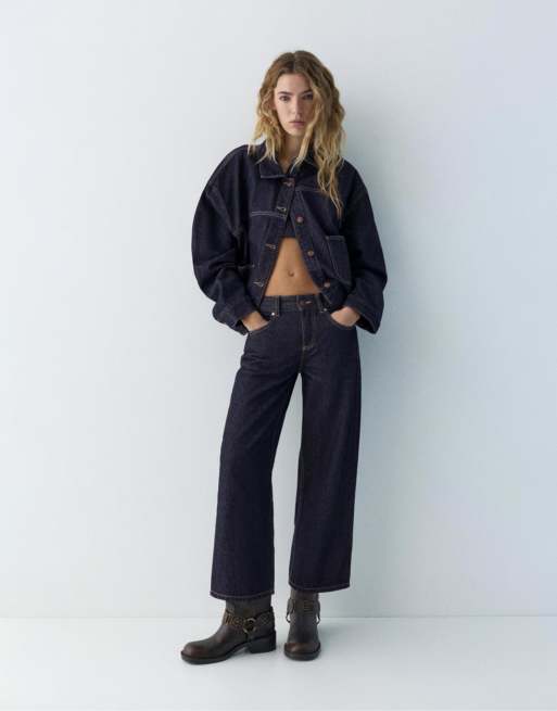 Pull&Bear - Jeans culotte a vita bassa blu navy