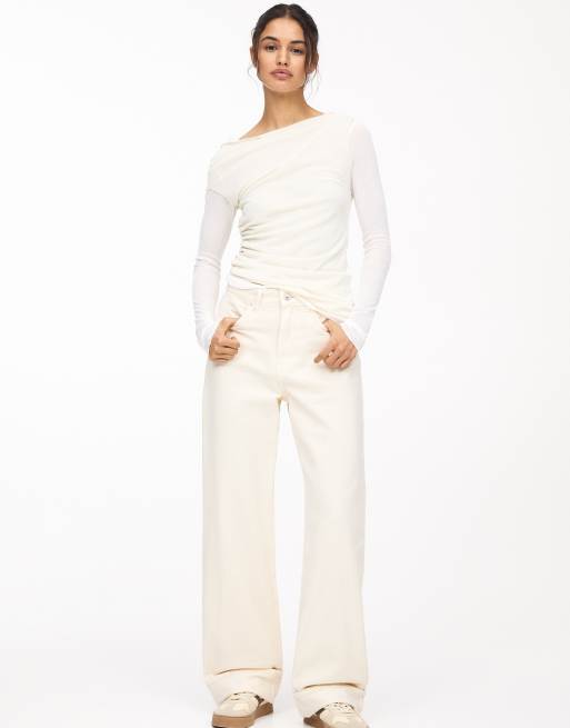 Pull&Bear - Jeans dritti ampi beige con risvolto sul fondo