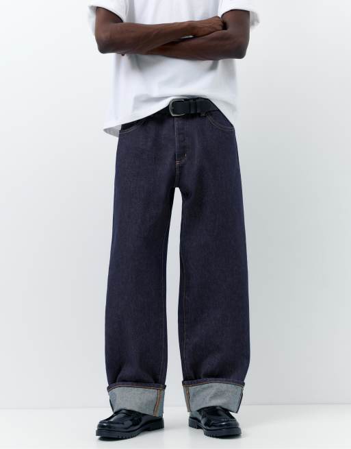 Pull&Bear - Jeans dritti blu navy con cimosa