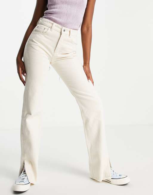 Pull&Bear - Jeans dritti con spacco sul fondo color sabbia