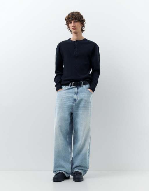 Pull&Bear - Jeans super ampi blu medio ricamati