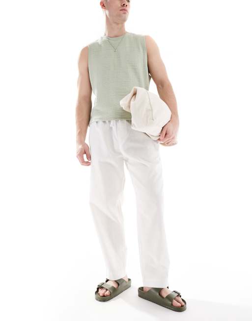 Pull&Bear - Joggers in misto lino bianco sporco