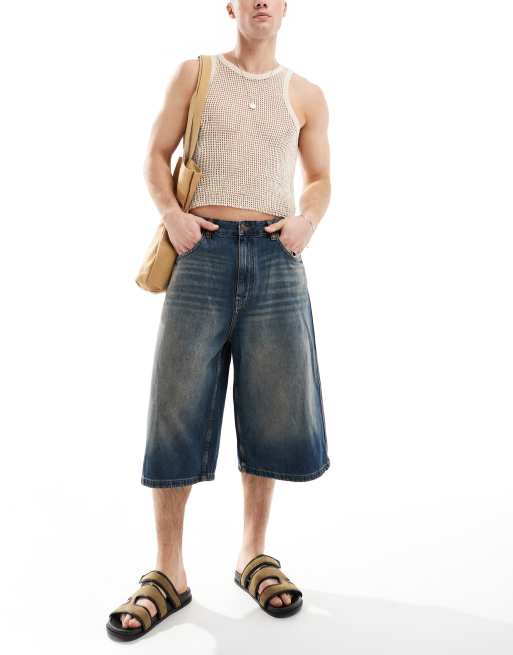 Pull&Bear - Jorts di jeans super ampi blu slavato