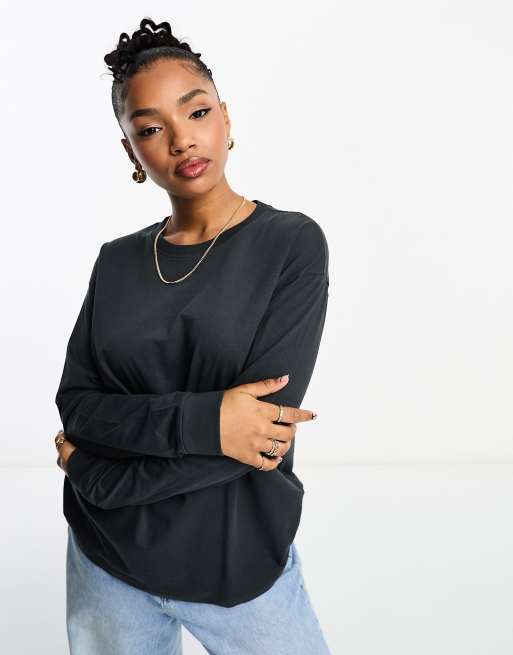 Pull&Bear - Maglietta oversize a maniche lunghe grigio antracite
